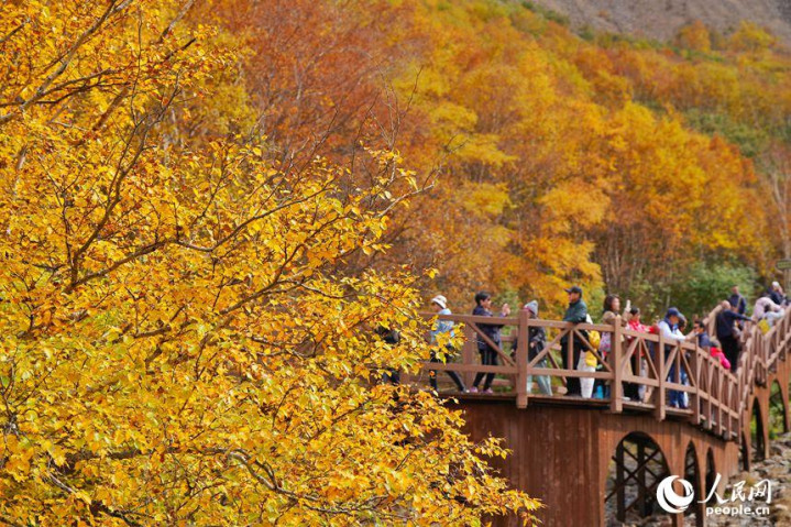 9月22日,游客在长白山景区赏秋景。人民网记者李洋摄